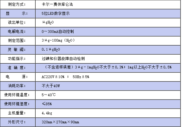 儀器符合GB/T7600;SH/T0246;GB/T606及采用卡爾—費(fèi)休法測(cè)定樣品中水分的有關(guān)標(biāo)準(zhǔn)。儀器采用了先進(jìn)的自動(dòng)控制電路,電解電流自動(dòng)跟蹤控制,外型結(jié)構(gòu)新穎,增加了過碘指示和儀器故障自動(dòng)檢測(cè)功能,從而使該儀器工作更可靠,使用更方便, 具有分析速度快(一分鐘出結(jié)果)、操作簡(jiǎn)便、精度高、自動(dòng)性強(qiáng)等特點(diǎn),廣泛應(yīng)用于石油、化工、電力、鐵路、環(huán)保等部門。